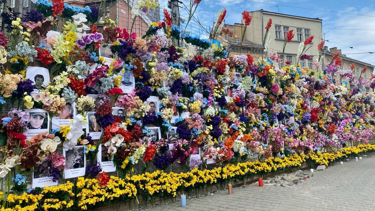 Ludzie na Ukrainie wpatrują się w pamiątkową ścianę stworzoną przez Leo Soto w Miami. Chce, aby ludzie widzieli twarze ofiar i pamiętali je, a to więcej niż powód. On@LivitupleoTen film został nakręcony przez LivBN9 pic.twitter.com/L7eJuMKZsL