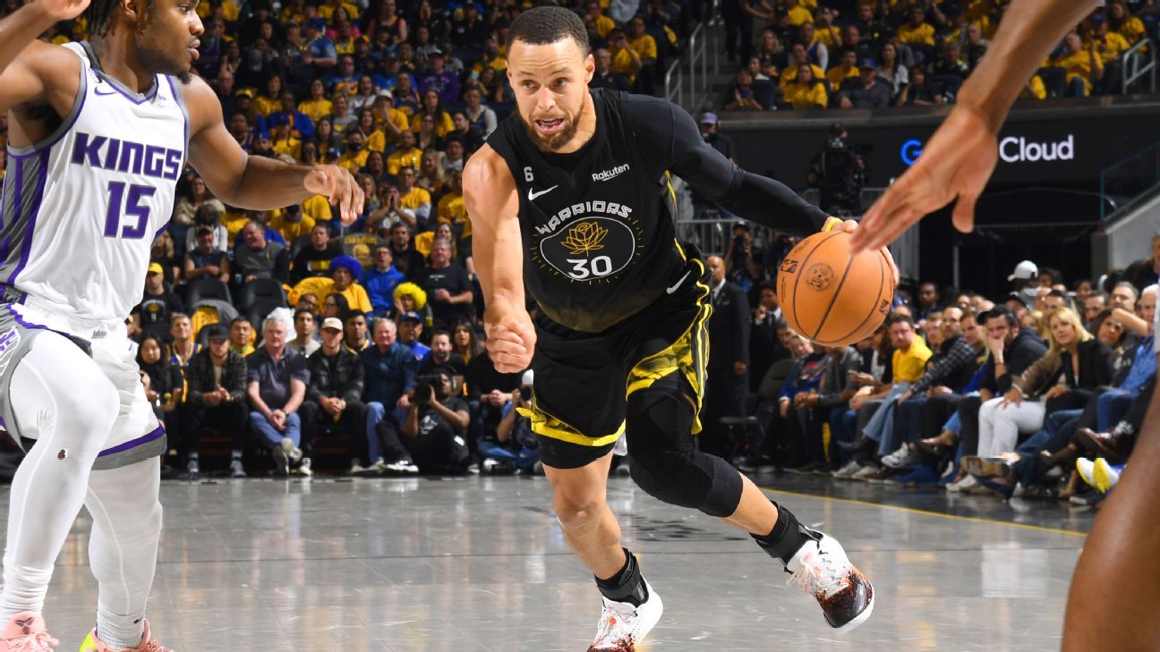 Steph Curry uderza za trzy punkty, gdy Warriors kontynuują awans przeciwko Kings w grze 1.